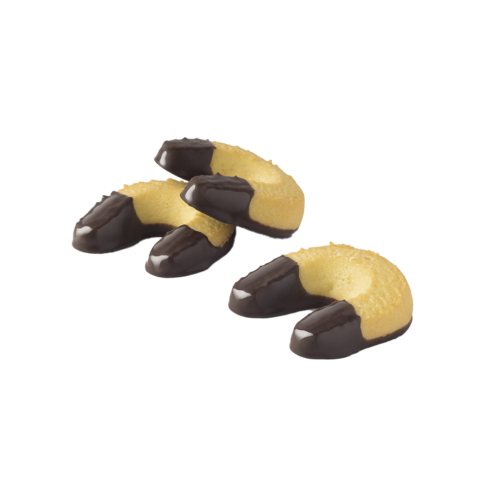 Sestavine: Mehka pšenična moka, margarina [rastlinska olja in maščobe (palmovo in sončnično olje), voda, emulgatorji: mono in digliceridi maščobnih kislin (E471)], sladkor, kakavov premaz 15 % [sladkor, rastlinska maščoba (palmova jedrca, palmovo olje), kakav v prahu 15 %, emulgator: repični lecitin, aroma], jajca, maslo, sredstvo za vzhajanje (natrijev hidrogenkarbonat, amonijev hidrogenkarbonat), sol, posneto mleko v prahu, aroma: vanilin, barvilo: beta-karoten.