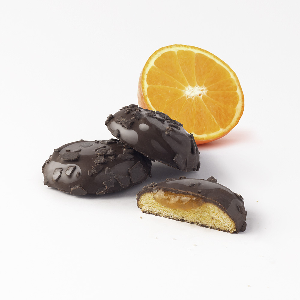 Sestavine: Mehka pšenična moka, pomarančni pire 30 % (glukozno-fruktozni sirup, saharoza, kandirana in mleta pomarančna lupina, pomarančni sok 10 %, želirno sredstvo: pektin, regulator kislosti: citronska kislina, konzervans: kalijev sorbat, arome, obarvano z izvlečkom paprike in z zgoščenim sokom črnega korenja), kakavov premaz 20 % [sladkor, rastlinska maščoba (palmova jedrca, palmovo olje), kakav v prahu z nizko vsebnostjo maščob 15 %, emulgator: repični lecitin, aroma], margarina [rastlinska olja in maščobe (palmovo in sončnično olje), voda, emulgator: mono in digliceridi maščobnih kislin], sladkor, temni kosmiči 7 % [sladkor, rastlinske maščobe (palmovo jedrce in palmovo olje v različnih razmerjih), kakav v prahu z nizko vsebnostjo maščob 8 %, emulgator (sončnični lecitin)], jajca, maslo, sredstva za vzhajanje (natrijev hidrogenkarbonat, amonijev hidrogenkarbonat), sol, posneto mleko v prahu, aroma: vanilin, barvilo: beta-karoten. Lahko vsebuje sledi soje, oreščkov, gorčice in volčjega boba.