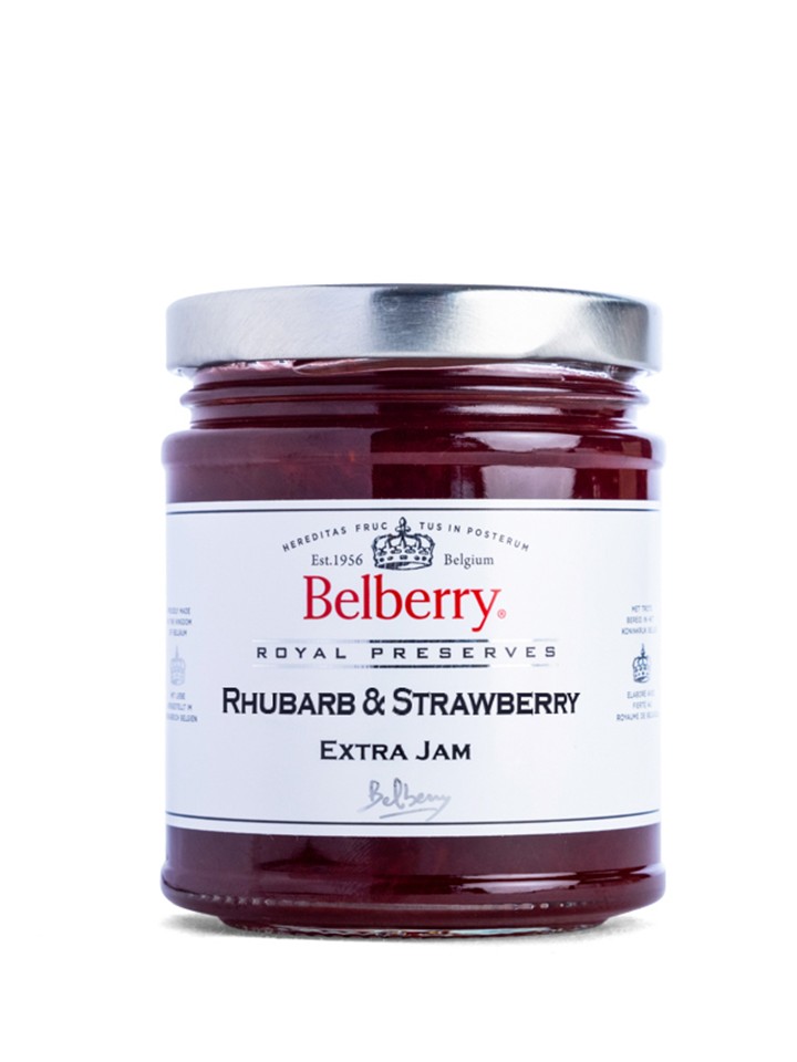 Sestavine: sladkor, rabarbara (EU) 32.50%, jagode (EU/izven EU) 22%, želirno sredstvo (pektin), limonin sok.